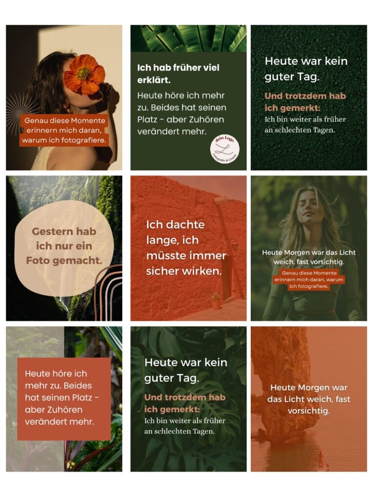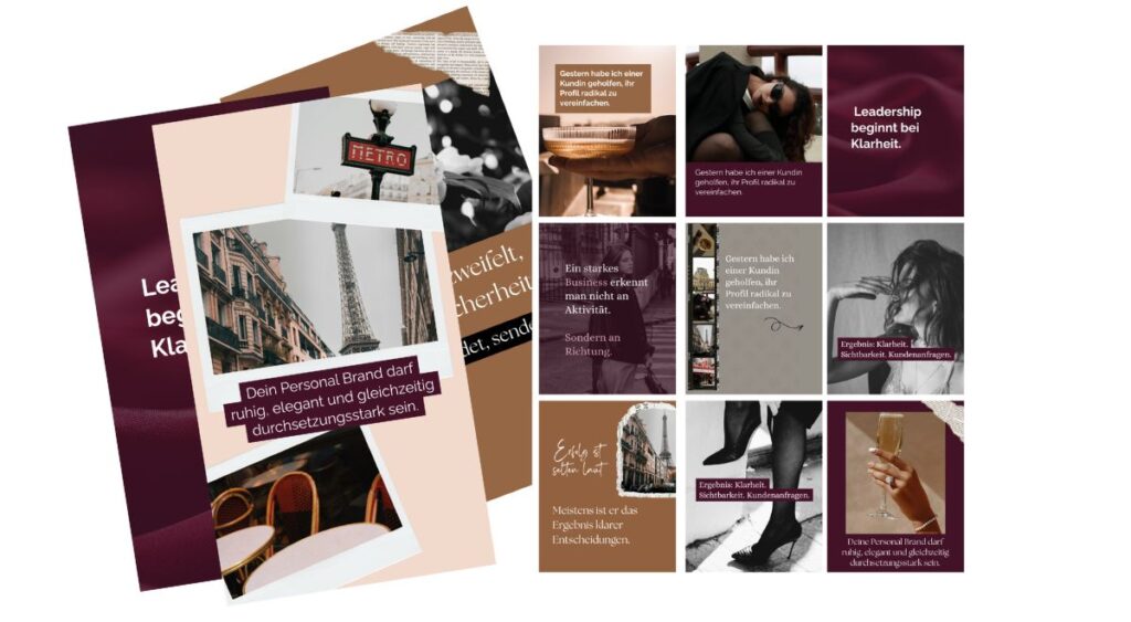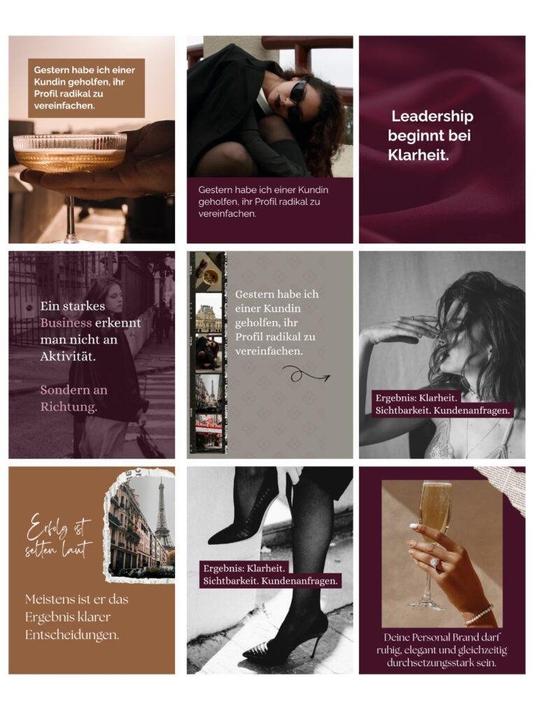 Durch einen einheitlichen, professionellen Instagram Feed, machst du deine Personal Brand & Expertise spürbar. Du nimmst deine Traumkund:innen mit in deine Welt und schaffst eine Verbindung. Kreiere jetzt deinen unwiderstehlichen, vertrauensvollen Auftritt!