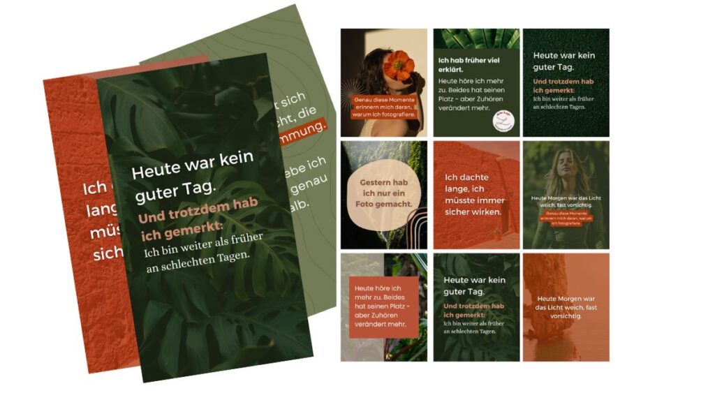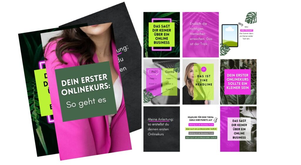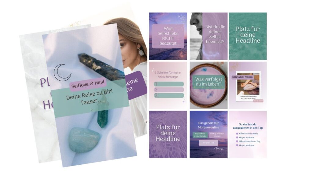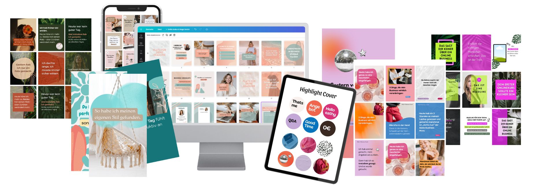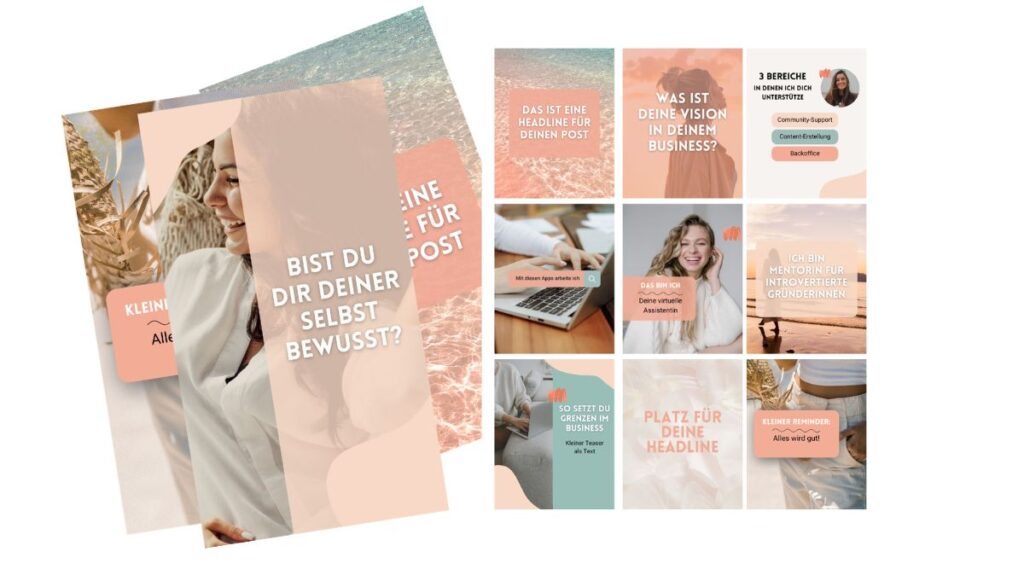 » du bekommst ein Tutorial, falls du noch nicht so fit bist mit Canva. Da zeige ich dir, wie du die Vorlagen bearbeiten und anpassen kannst!